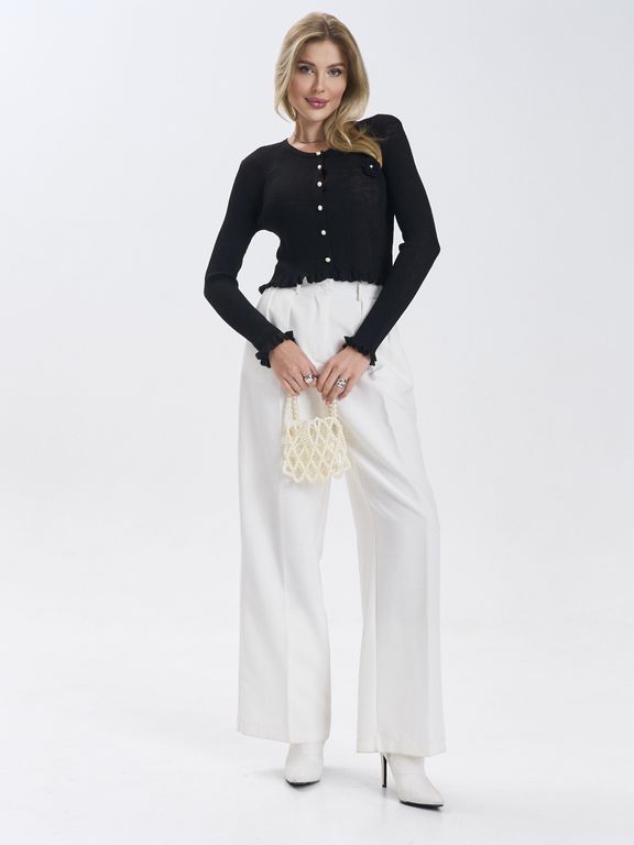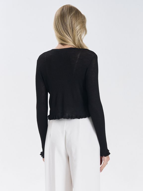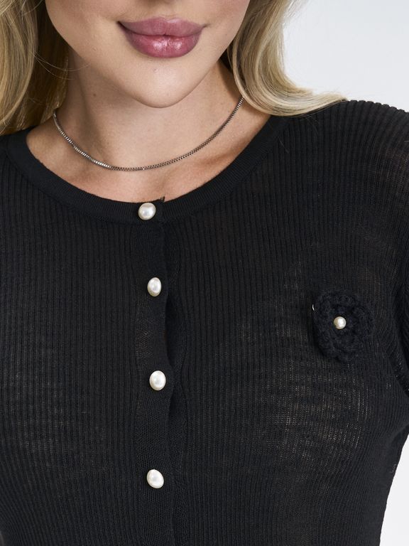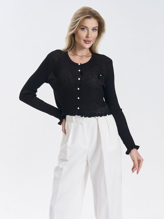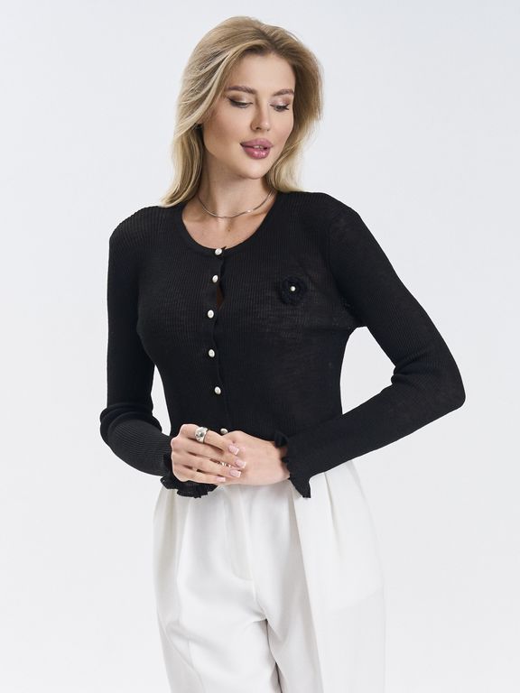 Кардиган выполнен из приятного к телу материала, легко комбинируется с другими элементами одежды и не выходит из моды.Аккуратные жемчужные пуговицы придают образу утончённость и делают модель универсальной — сочетайте её как с джинсами и брюками, так и с юбками и платьями. Идеально подходит для офиса, прогулок или уютных встреч. Состав: вискоза; нейлон Цвет: черный; черный нюд Вид застежки: пуговицы Покрой: приталенный