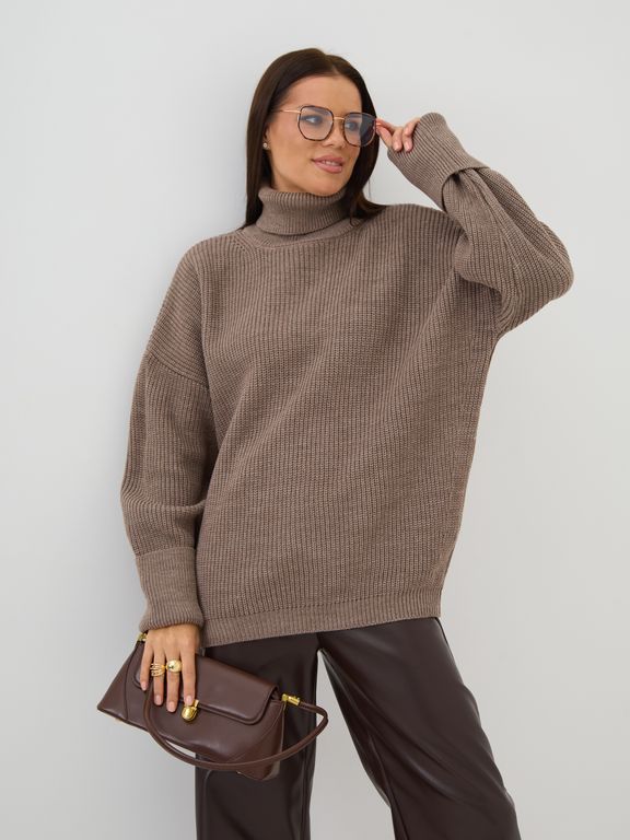 Этот свитер — воплощение комфорта и стиля, идеальный для тех, кто ценит уют и современные тенденции. Цвет мокко привносит в образ природную гармонию и универсальность, делая его подходящим для любого сезона. Нежное сочетание шерсти и акрила обеспечивает тепло и мягкость, идеальные для прохладных днейОверсайз размер добавляет нотку расслабленности и свободы движений, давая возможность сочетать свитер с различными элементами гардероба — от классических брюк до любимых джинсов. Высокий воротник оберегает вас от ветра и добавляет элегантности общему виду.